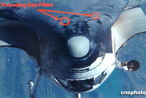 發(fā)現(xiàn)號(hào)航天飛機(jī)前腹部多余的縫隙填充物位置圖