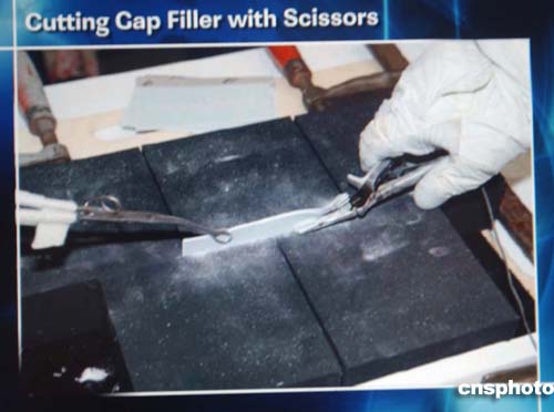 發(fā)現(xiàn)號(hào)宇航員斯蒂芬·羅賓遜出任“外科醫(yī)生”,將航天飛機(jī)多余的縫隙填充物剪下,或者把它都夾出來