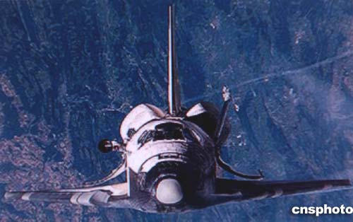 美國(guó)航天飛機(jī)“發(fā)現(xiàn)號(hào)”繼續(xù)在回家之路的軌道上遨游。(NASA)