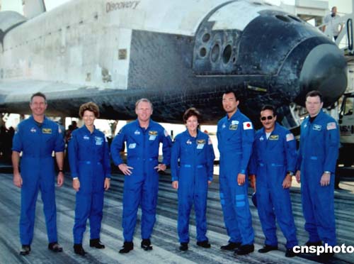 發(fā)現(xiàn)號(hào)航天飛機(jī)自七月二十六日升空之后,繞地球飛行二百一十九圈,行程五百八十萬英里。