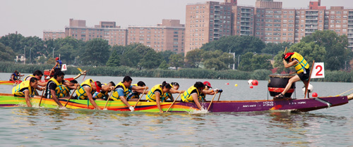 本次賽事規(guī)模超出以往歷屆,不僅東道主紐約有幾十支龍舟隊參賽,而且還有來自費城、波士頓、邁阿密以及加拿大的多倫多、蒙特利爾等地的各路精英,總數(shù)超過一百一十隊。