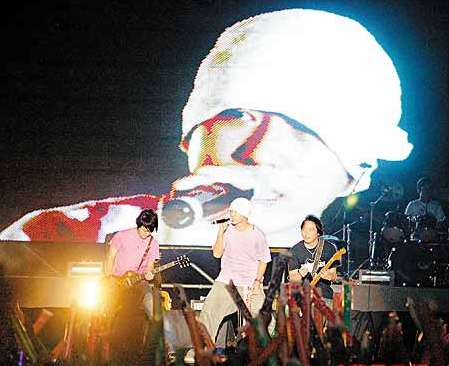 五隊臺灣樂隊包括五月天、四分衛(wèi)、董事長、脫拉庫和亂彈阿翔,前日在臺灣貢寮福隆海水浴場演出第六屆海洋音樂會。