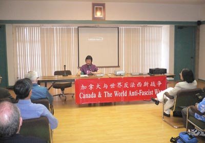 圖片展期間,中國總領(lǐng)館邀請(qǐng)有關(guān)學(xué)者和卑詩省抗日戰(zhàn)爭(zhēng)史實(shí)維護(hù)會(huì)的負(fù)責(zé)人舉辦三場(chǎng)抗戰(zhàn)史實(shí)講座,主題是《加拿大與世界反法西斯戰(zhàn)爭(zhēng)》。中新社記者呂振亞攝