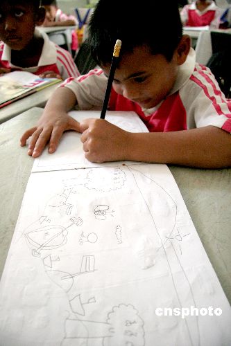 泰南海嘯災(zāi)區(qū)的孩子在描繪未來(lái)。