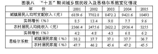(八)人民生活進(jìn)一步改善。城鎮(zhèn)居民人均可支配收入和農(nóng)村居民人均純收入分別實(shí)際增長(zhǎng)9.6%和6.2%。社會(huì)消費(fèi)品零售總額增長(zhǎng)12.9%。城鎮(zhèn)新增就業(yè)970萬(wàn)人,城鎮(zhèn)登記失業(yè)率4.2%。社會(huì)保障覆蓋范圍繼續(xù)擴(kuò)大,“兩個(gè)確保”進(jìn)一步鞏固,城鄉(xiāng)困難群眾基本生活得到保障。全國(guó)絕大多數(shù)地方已基本實(shí)現(xiàn)國(guó)有企業(yè)下崗職工基本生活保障向失業(yè)保險(xiǎn)并軌,東北三省完善城鎮(zhèn)社會(huì)保障體系試點(diǎn)順利實(shí)施。