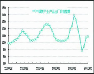煤炭產(chǎn)業(yè)產(chǎn)品銷售收入隨著宏觀經(jīng)濟(jì)形勢(shì)的好轉(zhuǎn),連續(xù)5個(gè)季度攀升,其同比增長(zhǎng)速度大幅上揚(yáng)后有所回落。隨著夏季用電高峰的到來,煤炭需求增多,將推動(dòng)煤炭銷售收入的上升。預(yù)計(jì)2010年煤炭產(chǎn)業(yè)產(chǎn)品銷售情況將持續(xù)向好。