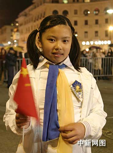 亞里士多德廣場的慶典儀式上人潮涌動(dòng),上千市民匯聚于此親眼目睹北京奧運(yùn)圣火的到來。截至目前,塞薩洛尼基的慶典在舞臺(tái)規(guī)模和參與人數(shù)上都堪稱圣火傳遞之最。近百人的童聲合唱團(tuán)由一位華人小姑娘、十歲的王佩珺領(lǐng)銜,為觀眾帶來了純潔、恬靜的美妙感受。漫天的禮花在空中綻開,將整個(gè)城市籠罩在節(jié)日的喜慶氣氛中。