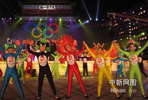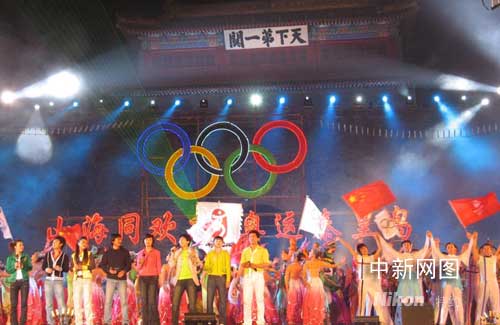 秦皇島民眾山海關前歡慶奧運倒計時一百天(圖)