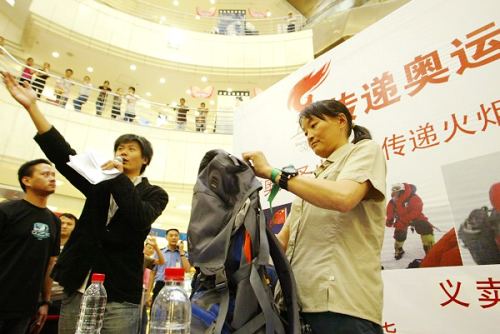 “一張CD15塊,您就可以讓兩位災區(qū)人民都吃上一頓熱乎飯”、“一桶油、一袋米、一把面……所有愛心食堂物資都是由成都各界捐贈的,匯集我們所有人的力量,我們就能讓災區(qū)人民不斷糧!”志愿者們的動情宣傳,引得不少市民駐足。下午五點鐘,義賣活動開始,從圣火上珠峰主題歌的限量單曲碟到隊員們圣火登頂時的沖鋒衣、墨鏡、背包,物品不管大小,都代表這些珠峰英雄們對災區(qū)人民的濃濃愛意。拍賣會的高潮,來自于義賣吉吉登頂時所用的一個背包,5120、8848,大家紛紛喊出非常有特殊意義的價錢,被氣氛感染的譚維維在臺上也坐不住了,和臺下競拍者一起競拍,最終以1萬元拍得此包。當天所有義賣和簽售款額已經全部捐獻給“愛心食堂”。