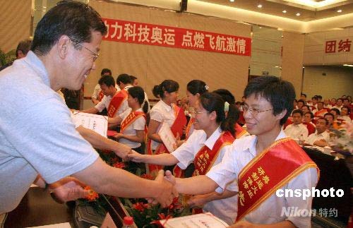 7月18日,承擔(dān)北京奧運火炬研制任務(wù)的中國航天科工集團(tuán)第三研究院在北京舉行總結(jié)和頒獎大會,對該院奧運火炬研制及技術(shù)保障團(tuán)隊進(jìn)行表彰。據(jù)悉,在借鑒火箭發(fā)動機(jī)技術(shù)的基礎(chǔ)上,北京奧運火炬燃燒系統(tǒng)大膽創(chuàng)新,各項指標(biāo)都遠(yuǎn)遠(yuǎn)超出北京奧組委設(shè)計要求,多項技術(shù)世界首創(chuàng),并已經(jīng)申請十幾項專利。 中新社發(fā) 孫自法 攝