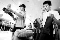 即日起,到北京各火車站乘坐火車的旅客,都須接受鐵路警方進行的液體搜危檢查。昨天上午,記者從鐵路警方獲悉,為了使北京站、北京西站、北京南站、北京北站四大火車站的安檢措施更加嚴密,警方開始對這里的安檢工作進一步升級,實施24小時安檢查危工作,對進站旅客攜帶的行李物品件件進行檢查。