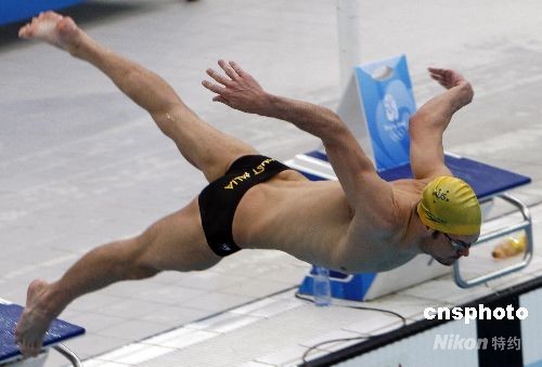 8月5日,澳大利亞游泳隊(duì)在北京“水立方”適應(yīng)場地,為即將來臨的比賽做準(zhǔn)備。澳大利亞代表團(tuán)一半獎(jiǎng)牌都來自于游泳項(xiàng)目,本屆奧運(yùn)會中澳大利亞將與美國隊(duì)在賽場上一爭高下。中新社發(fā) 杜洋 攝