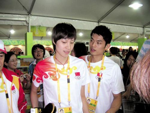 出門,兩人立刻就被“可口可樂交換紀(jì)念章”的店給吸引進(jìn)去了,結(jié)果兩人一人弄了一件免費(fèi)的環(huán)保T恤。一路上,圍觀拍照的人很多,林丹和謝杏芳很大方,不管是合影或者簽名,都來者不拒,而且絕對掛上微笑。看著羽毛球男女隊(duì)的領(lǐng)軍人物,在大賽前能有這樣的心情和心態(tài),真的很高興。對于記者的提問,林丹也不拒絕,但他說:“我現(xiàn)在不想說比賽的事兒,不過我的狀態(tài)非常好!弊∵M(jìn)了奧運(yùn)村,林丹說:“這里環(huán)境非常好,比雅典時(shí)候好!倍x杏芳微微抱怨,“就是床小了點(diǎn)兒!