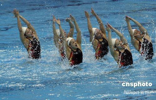 8月6日,日本花樣游泳隊在北京“水立方”適應(yīng)賽場。作為花樣游泳老牌勁旅,日本隊在悉尼、雅典兩屆奧運(yùn)會上收獲了4枚銀牌,她們一直希望能品嘗到金牌的滋味。中新社發(fā) 杜洋 攝
