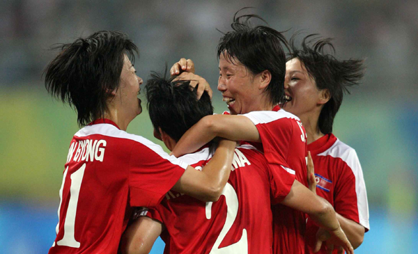 圖為朝鮮隊Sonu Kyong Sun(左)貼身防守。中新社發(fā) 張宇 攝