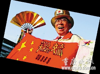 山田老人為北京奧運(yùn)加油。 圖片來源:重慶晚報(bào)