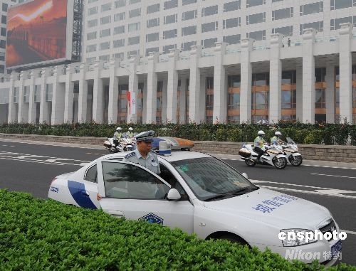 八月八日,“鳥(niǎo)巢”體育場(chǎng)外圍的市政工作人員負(fù)責(zé)疏導(dǎo)北京奧運(yùn)會(huì)開(kāi)幕式的交通。中新社發(fā) 賈國(guó)榮 攝