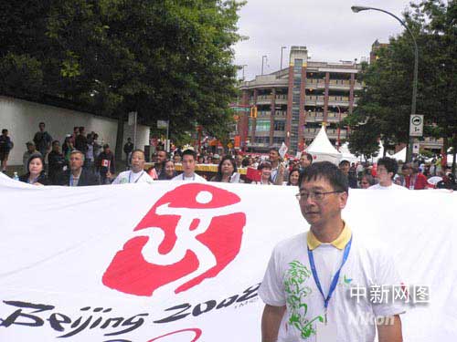 慶;顒(dòng)開(kāi)始前,加拿大聯(lián)邦國(guó)會(huì)議員杜新志等名流手持印有大紅“中國(guó)印”的巨幅北京奧運(yùn)會(huì)會(huì)旗,在舞獅隊(duì)的引領(lǐng)下沿唐人街主干道游行。當(dāng)天,正好趕上一年一度的華埠節(jié)開(kāi)幕,數(shù)千名華人華僑和各族裔人士加入游行隊(duì)伍中,揮舞中加兩國(guó)國(guó)旗,共同歡慶北京奧運(yùn)會(huì)順利開(kāi)幕。
