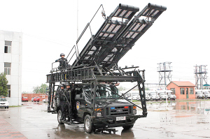 特警突擊車,又稱反恐突擊車或是快速升降車。由于這輛新型的特警裝備車能夠根據(jù)需要實施變形,特警們更喜歡稱此車為“特警汽車人”。突擊車由底盤和多功能梯組成,多功能梯采用模塊化結(jié)構(gòu)設(shè)計,不但可以安裝在多種底盤平臺上,而且可以實現(xiàn)不同的戰(zhàn)術(shù)組合。靈活多變的坡面、梯子、越障板,可以實現(xiàn)多人、多層次、多方向的高空突破、人質(zhì)救援、反劫機(jī)作戰(zhàn),尤其是此車可以在快速行進(jìn)中調(diào)節(jié)和伸展坡面,完全適應(yīng)反恐實戰(zhàn)的要求。