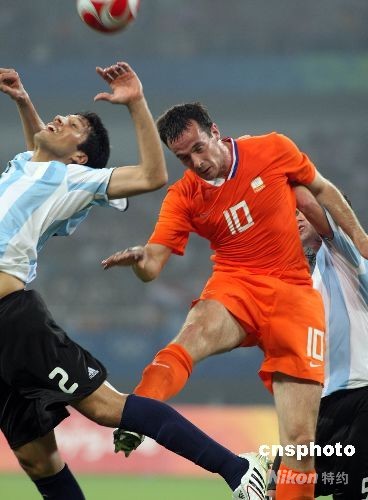 8月16日,北京奧運(yùn)會(huì)男足阿根廷VS荷蘭的比賽在上海體育場(chǎng)進(jìn)行。經(jīng)過120分鐘激戰(zhàn),荷蘭隊(duì)1:2不敵阿根廷無緣四強(qiáng)。中新社發(fā) 湯彥俊 攝