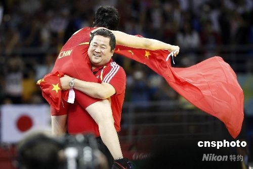 8月17日,中國(guó)選手王嬌獲得北京奧運(yùn)會(huì)女子自由式摔跤72公斤級(jí)金牌。中新社發(fā) 盛佳鵬 攝