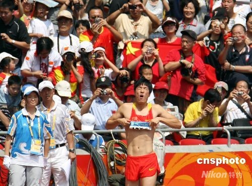 8月18日上午,在北京奧運(yùn)男子110米欄第1輪第6組比賽中,中國選手劉翔在第一次起跑后因腿傷遺憾退出比賽。中新社發(fā) 任晨鳴 攝