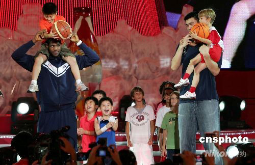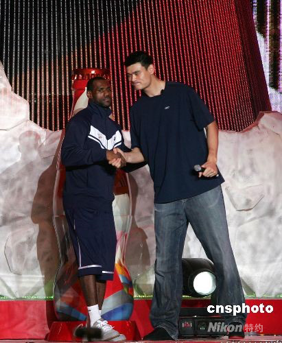 圖:姚明、詹姆斯與小球迷"零距離”接觸