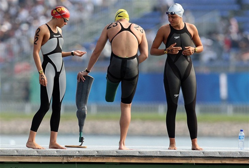 人們關(guān)注的是她的腿—左腿膝蓋以下部分被全部截去,并且比健全右腿的對稱部分細(xì)了18厘米。在對手“如林”的長腿中,這雙殘缺的腿愈發(fā)顯得突兀。她就是杜托伊特,她成為奧運(yùn)史上首位與健全人同場競技的女子肢殘游泳選手。