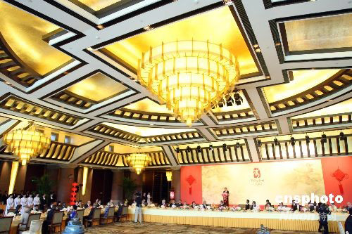8月24日,中國國家主席胡錦濤和夫人劉永清在北京釣魚臺國賓館舉行宴會,款待前來出席北京奧運會閉幕式的國際貴賓。胡錦濤在宴會上致辭。中新社發(fā) 廖文靜 攝