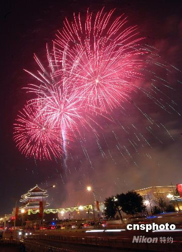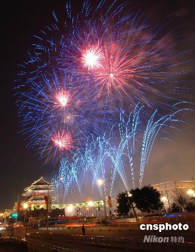 8月24日晚,第29屆夏季奧運(yùn)會(huì)在北京國家體育場“鳥巢”勝利閉幕。北京天安門廣場燃放了20分鐘焰火,將正陽門上空照耀得絢麗多彩。中新社發(fā) 鄒憲 攝