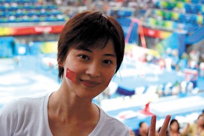 在北大體育館觀看中國女子乒乓團(tuán)體決賽的袁立,見證了中國奪取奧運(yùn)會(huì)歷史上首枚乒乓團(tuán)體金牌,不忘擺個(gè)POSE表示一下喜悅心情。