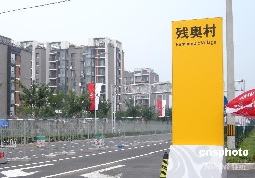 2008年8月28日,第13屆北京殘奧會(huì)彩旗在北京殘奧村四周迎風(fēng)飄揚(yáng)。當(dāng)日14時(shí),殘奧村預(yù)開(kāi)村,開(kāi)始接待北京殘奧會(huì)運(yùn)動(dòng)員。據(jù)悉,預(yù)計(jì)將有2000多名殘疾人運(yùn)動(dòng)員入住殘奧村。中新社發(fā) 玉龍 攝