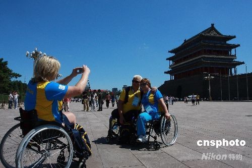8月31日,北京天安門廣場晴空萬里,一批外國殘奧會代表團(tuán)成員樂游北京天安門廣場。中新社發(fā) 鄭雄增 攝