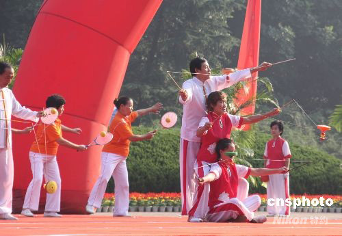 九月二日上午,北京殘奧圣火來到古都南京,受到民眾的熱烈歡迎。圖為開幕式上的文藝表演。中新社發(fā) 牛莉 攝