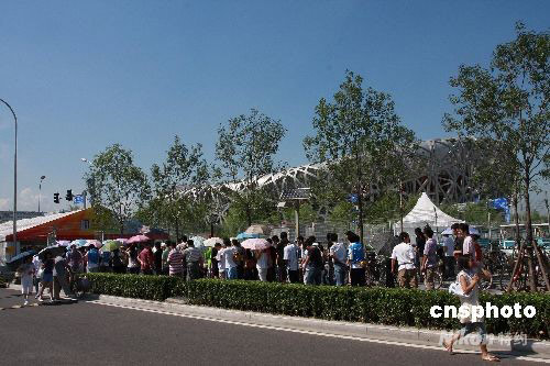圖:北京市民排長隊一睹“鳥巢”風(fēng)采