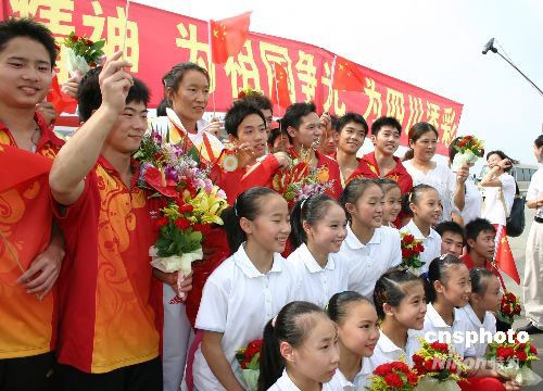 四川奧運(yùn)冠軍榮歸家鄉(xiāng)。