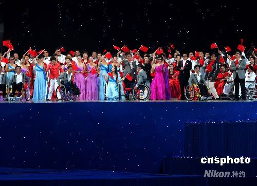 北京2008殘奧會(huì)開幕式將于9月6日晚8時(shí)在北京國家體育場“鳥巢”舉行,開幕式前,殘疾人藝術(shù)團(tuán)體及藝人登臺(tái)進(jìn)行文藝表演。 中新社發(fā) 宋吉河 攝