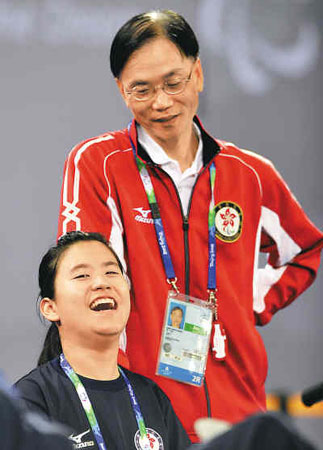4年前雅典殘奧會,首次參賽的中國香港硬地滾球隊一舉摘得兩金,可惜,摕o緣金牌!皬难诺浠貋碇笏恢焙芮趭^,就為了這塊金牌。在香港的時候,我們每周二、四、六晚上訓(xùn)練,每次訓(xùn)練兩小時,遇到快要比賽的時候,周日會全天訓(xùn)練!惫藰s動情地說:“這枚金牌是我們兩個人的夢想,終于實現(xiàn)了!