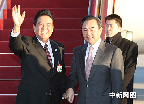 圖:陳云林率團(tuán)飛赴臺灣 王毅機(jī)場送行