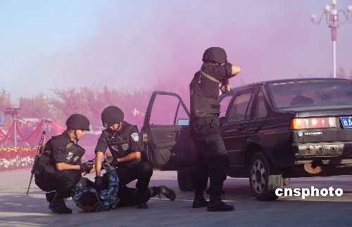圖:新疆公路交警舉行大規(guī)模演習(xí)