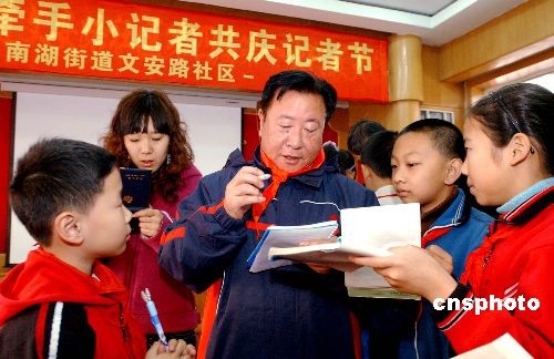 圖:沈陽老記者牽手小記者共慶節(jié)日