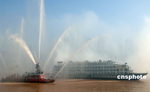 圖:重慶舉行內(nèi)河旅游客輪火災(zāi)撲救演習(xí)