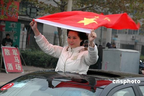 圖:少女持國旗巡游“感恩中國”