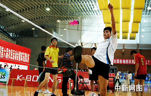 圖:農(nóng)運(yùn)會(huì)毽球花毽比賽 選手騰空展絕技