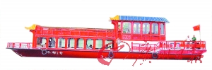 該畫舫船外形美觀,格調(diào)典雅,操縱靈活,是一款具有典型客家風(fēng)情的船型,主要用于接待、觀光和游覽。(陳治家 吳立平)