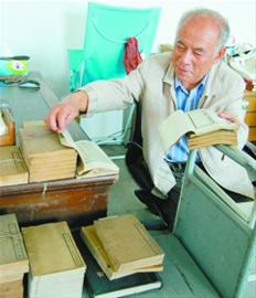 在遼寧省圖書館6樓特藏部的辦公室,年近古稀的韓錫鐸輕輕翻閱著紙頁發(fā)黃的線裝書,旁邊的推書車上,整齊地?cái)[放著一摞摞古籍——