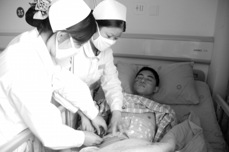 “因?yàn)楦吲识嗵幨軅褂寐樽韯┖罂赡茉斐砂c瘓,醫(yī)生在對(duì)高攀進(jìn)行搶救時(shí)只能保守治療,放棄麻醉劑的使用!钡玛柺腥嗣襻t(yī)院急救室當(dāng)天值班的一名醫(yī)生說,經(jīng)診斷,高攀右肋7根斷裂,肺刺傷,肝挫傷,肩胛骨骨折,右臉被掛傷,傷口長達(dá)4厘米。