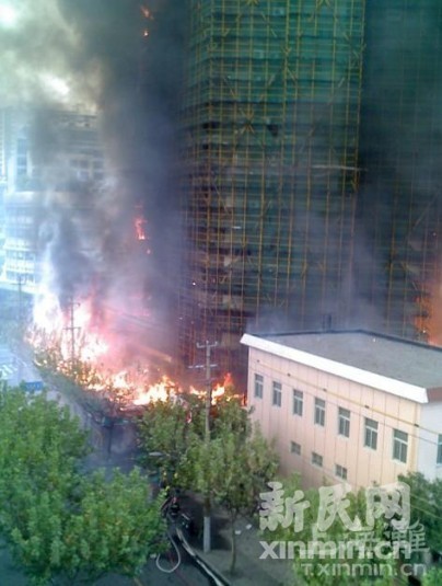 新民網(wǎng)記者在現(xiàn)場了解到,起火的大樓位于上海市靜安區(qū)膠州路707弄1號,火勢不斷蔓延,外立面的防護網(wǎng)已經(jīng)燒到了10層樓高。