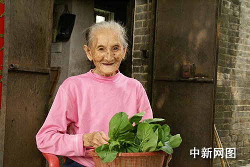今年已99歲的楊容開老太婆在平沙島上生活了幾十年,現(xiàn)在還能下地種菜。今天上午,記者來到島上采訪時看到一個典型的嶺南水鄉(xiāng)小院內(nèi)種滿了綠油油、水靈靈的青菜瓜果。正好看到楊婆婆拿著一把水靈靈的青菜準備送到孫子家里。楊婆婆說,自己種出來的菜蔬吃不完,送給孫子償鮮。