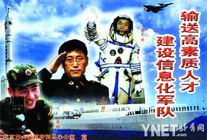 昨天記者在市征兵辦公室看到,這幅即將要刊登的征兵公益廣告畫(huà)面為一穿著新式軍裝的女軍人,主題口號(hào)為“一人當(dāng)兵全家光榮一次服役終身受益”。記者從已經(jīng)刊登出的三次征兵公益廣告畫(huà)面中看到,繼雷鋒、黃繼光等革命英雄擔(dān)任我國(guó)軍人的形象代言人后,航天英雄楊利偉、北大學(xué)子兵高明等則成為我國(guó)現(xiàn)代高素質(zhì)軍人的形象代言人。